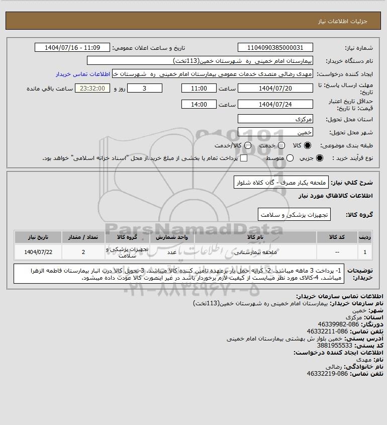 | 1 | -- | ملحفه بیمارستانی | عدد | تجهیزات پزشکی و سلامت | 2 | 1404/07/22 |