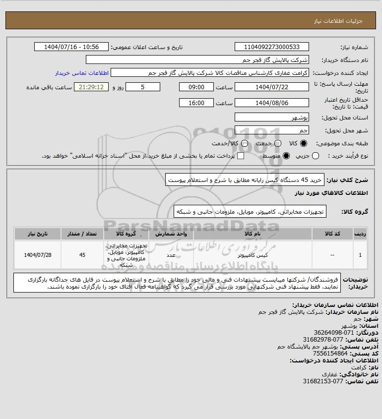 نام دستگاه خریدار:شرکت پالایش گاز فجر جم