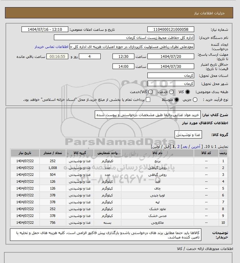 استعلام خرید مواد غذایی دقیقا طبق مشخصات درخواستی و پیوست شده, استعلام خرید مواد غذایی دقیقا طبق مشخصات درخواستی و پیوست شده