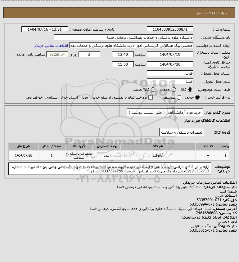 نام دستگاه خریدار:دانشگاه علوم پزشکی و خدمات بهداشتی درمانی فسا