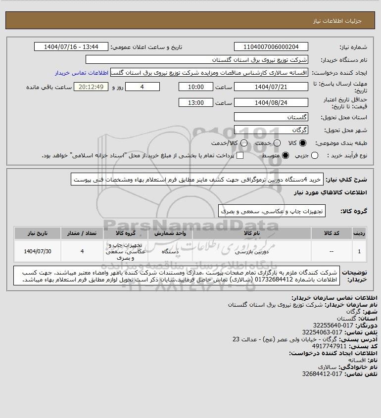 شرح کلی نیاز: خرید 4دستگاه دوربین ترموگرافی جهت کشف ماینر مطابق فرم استعلام بهاء ومشخصات فنی پیوست