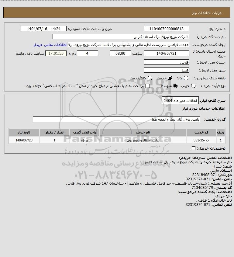 استعلام اتفاقات مهر ماه 1404, استعلام اتفاقات مهر ماه 1404