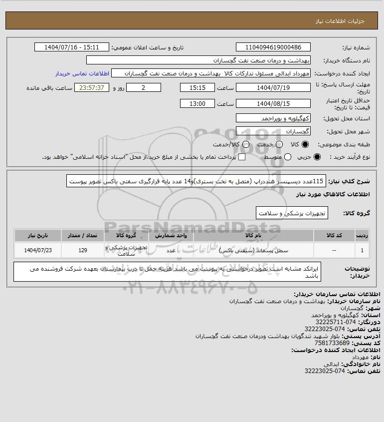 نام دستگاه خریدار:بهداشت و درمان صنعت نفت گچساران