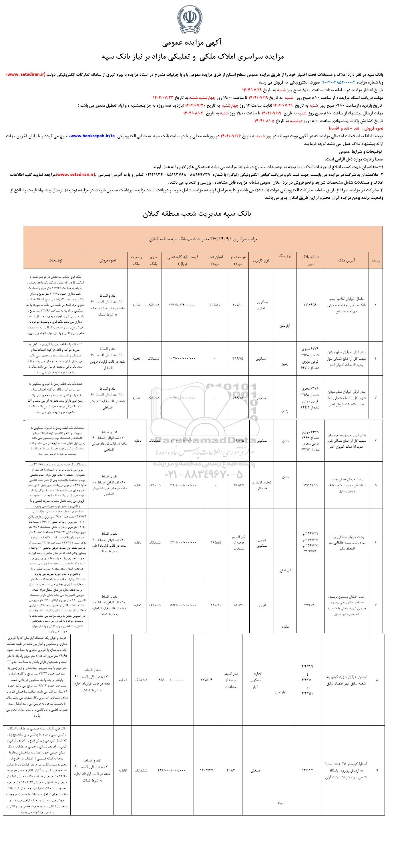 مزایده سراسری املاک ملکی و تملیکی مازاد بر نیاز بانک سپه, مزایده سراسری املاک ملکی و تملیکی مازاد بر نیاز بانک سپه