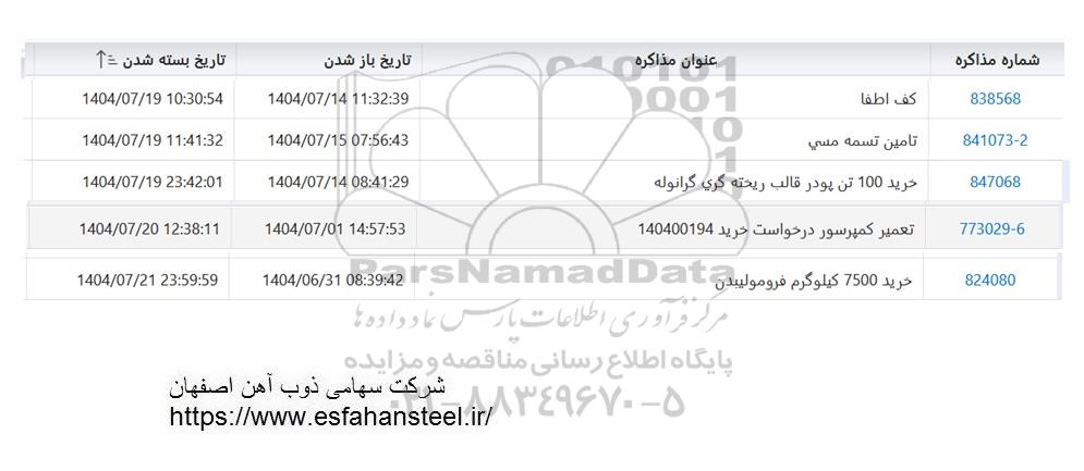 | 824080 | خرید 7500 کیلوگرم فرومولیبدن | 1404.7.21 |