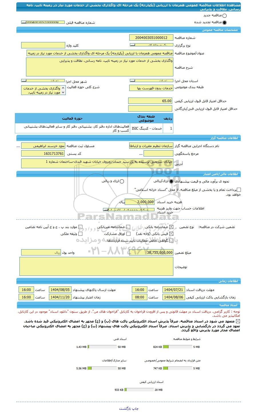 | مبلغ تضمین | 38,755,000,000 | واحد پول | ریال |