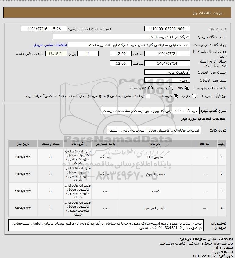 شرح کلی نیاز: خرید 8 دستگاه مینی کامپیوتر طبق لیست و مشخصات پیوست