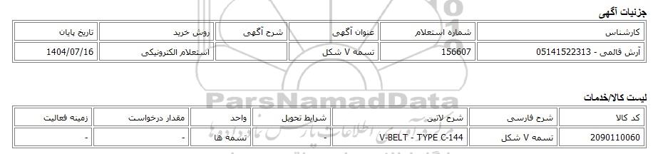 آرش قائمی - 05141522313156607تسمه V شکلاستعلام الکترونیکی1404/07/16