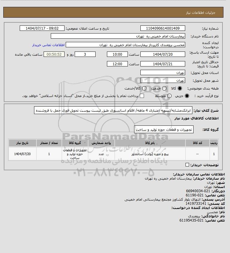 نام دستگاه خریدار:بیمارستان امام خمینی ره تهران