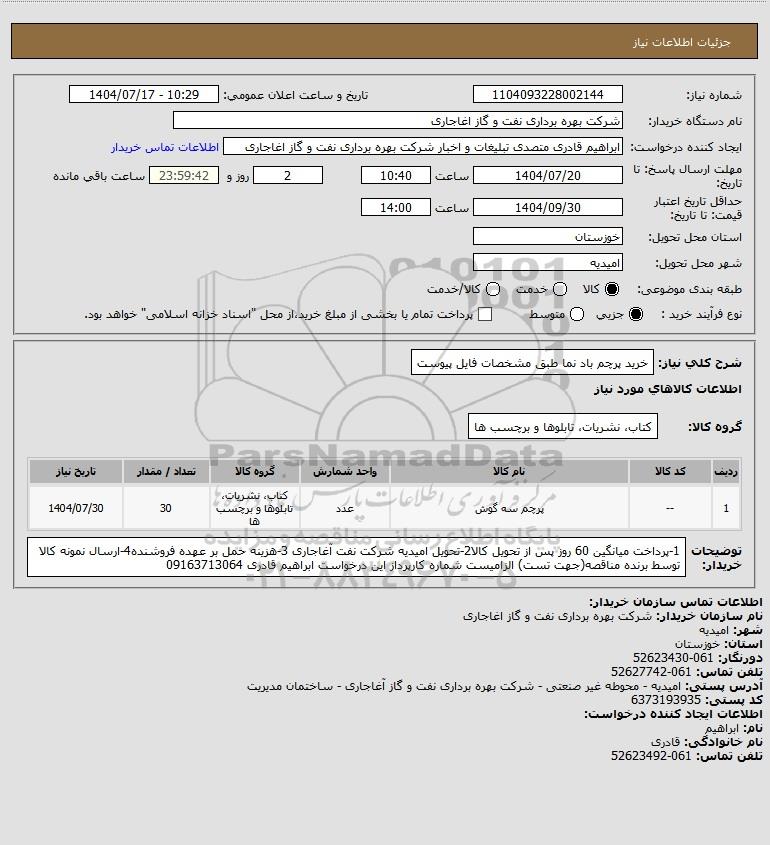 شرح کلی نیاز: خرید پرچم باد نما طبق مشخصات فایل پیوست
