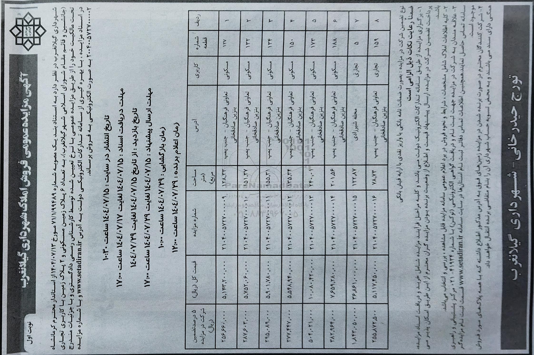 آگهی مزایده عمومی فروش املاک شهرداری گیلانغرب
