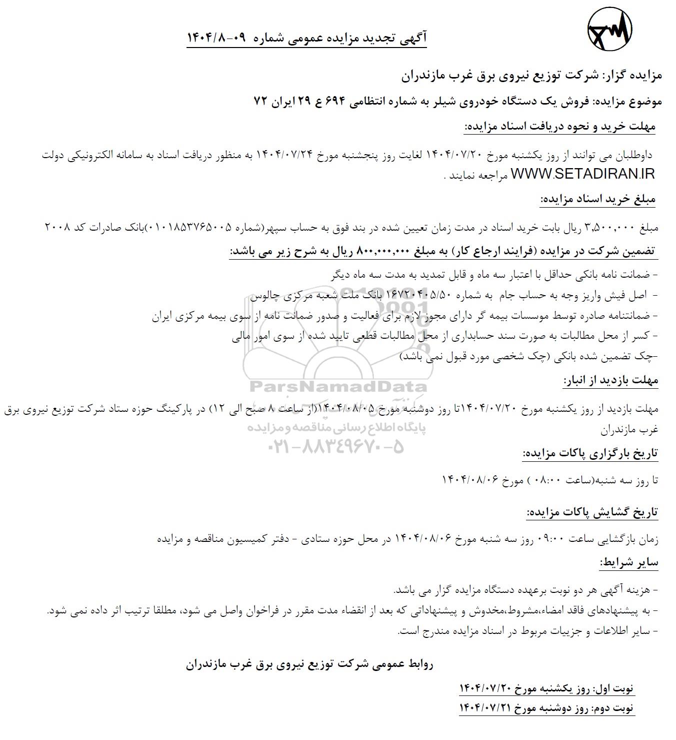 آگهی تجدید مزایده عمومی شماره 09-1404/8