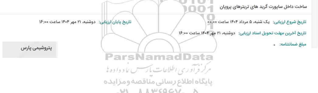 در صورت نیاز به دریافت راهنمایی یا پشتیبانی در خصوص استعلام و مناقصه و فراخوان مناقصه عمومی، مناقصه محدود، مناقصه بین‌ المللی، مناقصه دولتی، مناقصه خصوصی، مناقصه آنلاین فروش تجهیزات، مناقصه مشاوره‌ای مناقصه پتروشیمی و انرژی مناقصه صنایع و تجهیزات برق و مخابرات و نفت و گاز ... لطفاً با سایت خبری مناقصه و مزایده پارس‌نماد داده‌ها به شماره 88349670 تماس حاصل فرمایید.