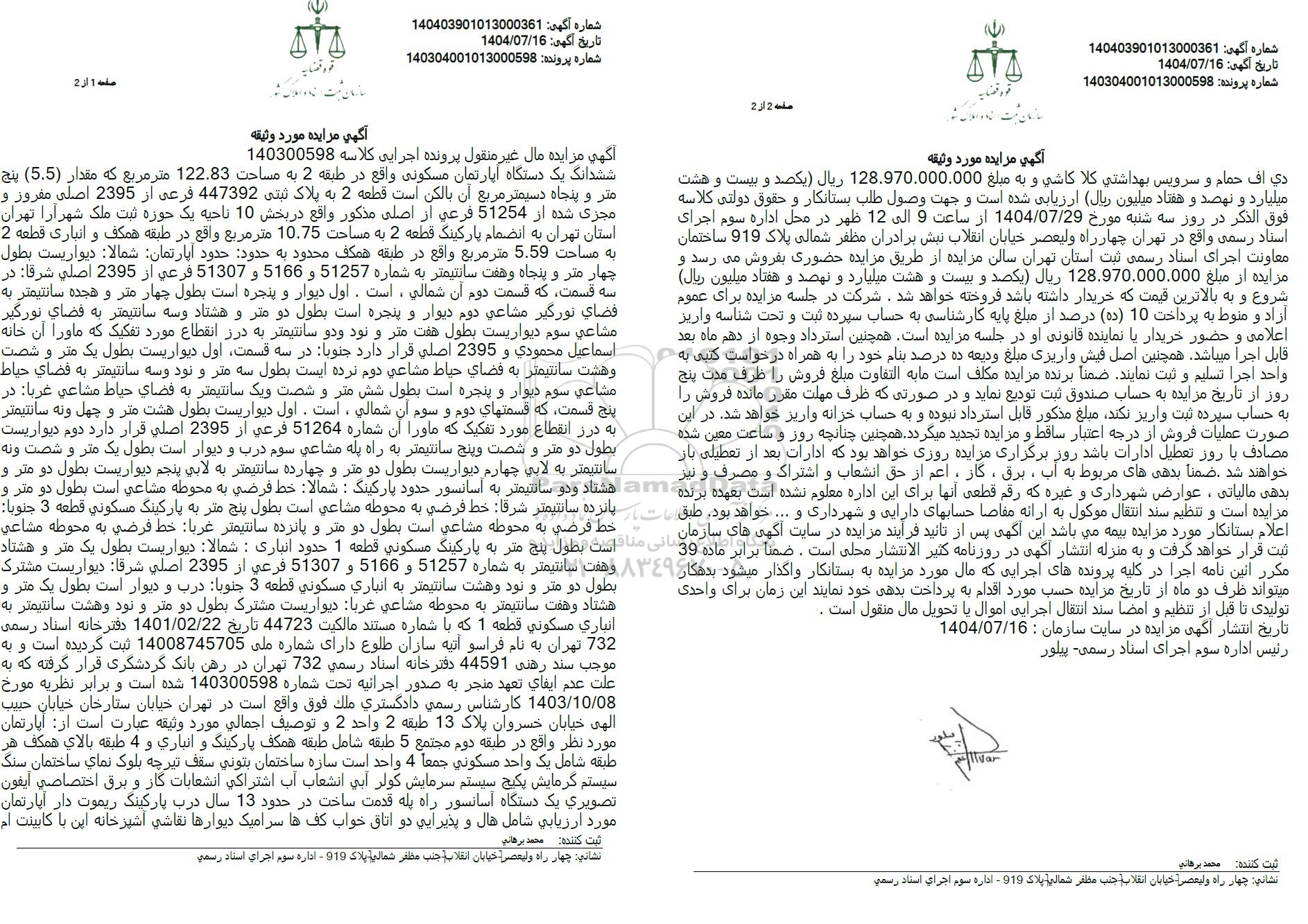شماره آگهی : 140403901013000361