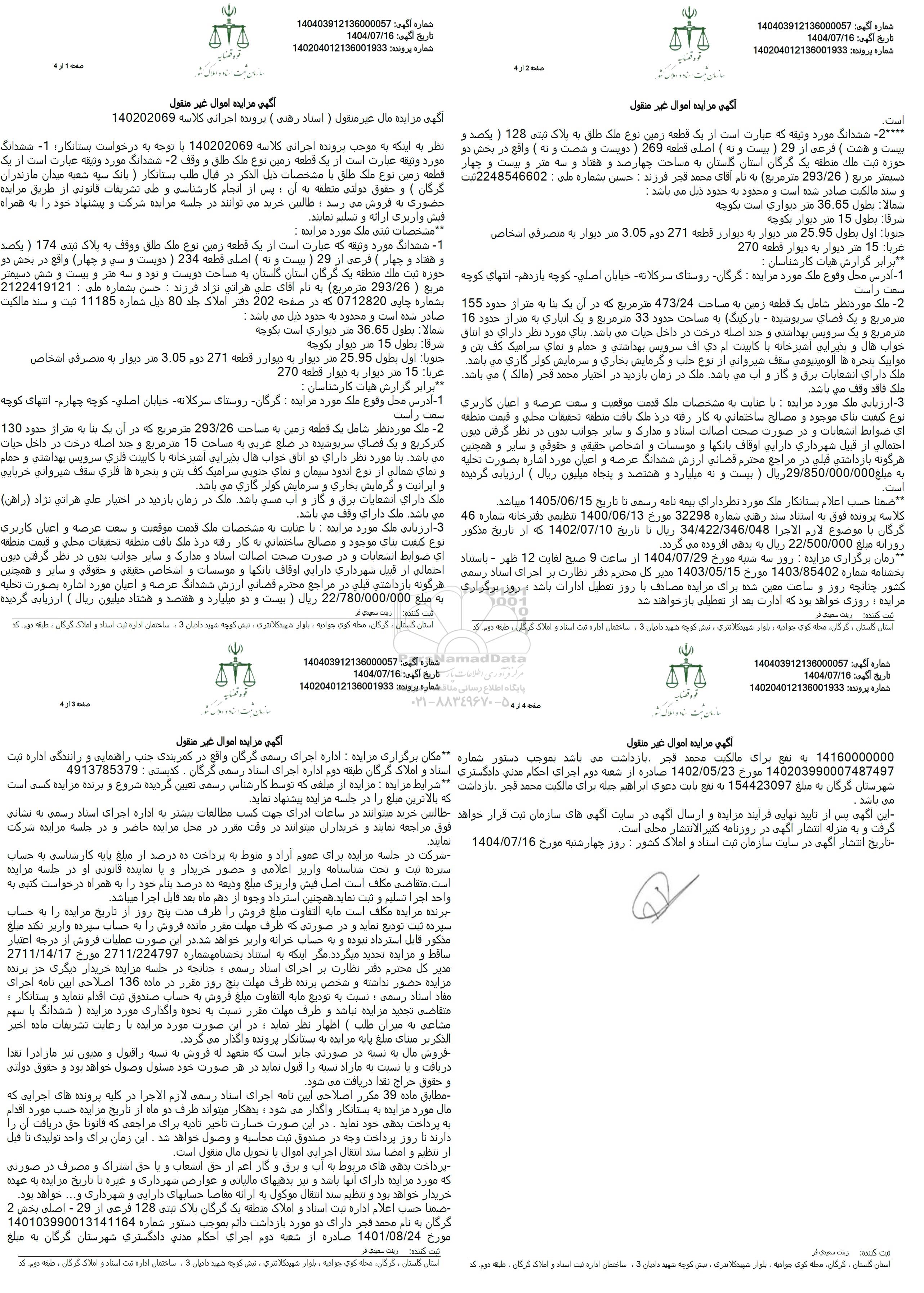 مزایده فروش ششدانگ مورد وثیقه که عبارت است از یک قطعه زمین نوع ملک طلق ووقف به پلاک ثنبی 174 (یکصد و هفتاد و چهار) فرعی از 29 (بیست و نه) اصلی قطعه 234 (دویست و سی و چهار) واقع در بخش دو حوزه ثبت ملک یک گرگان استان گلستان به مساحت دیویست و نود و سه متر و بیست و شش دسیمتر مربع (293/26 متر مربع)