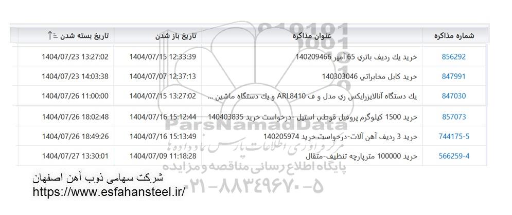 | 744175-5 | خرید سه ردیف آهن آلات- درخواست خرید 140205974 | 1404.7.16 | 1404.7.26 |