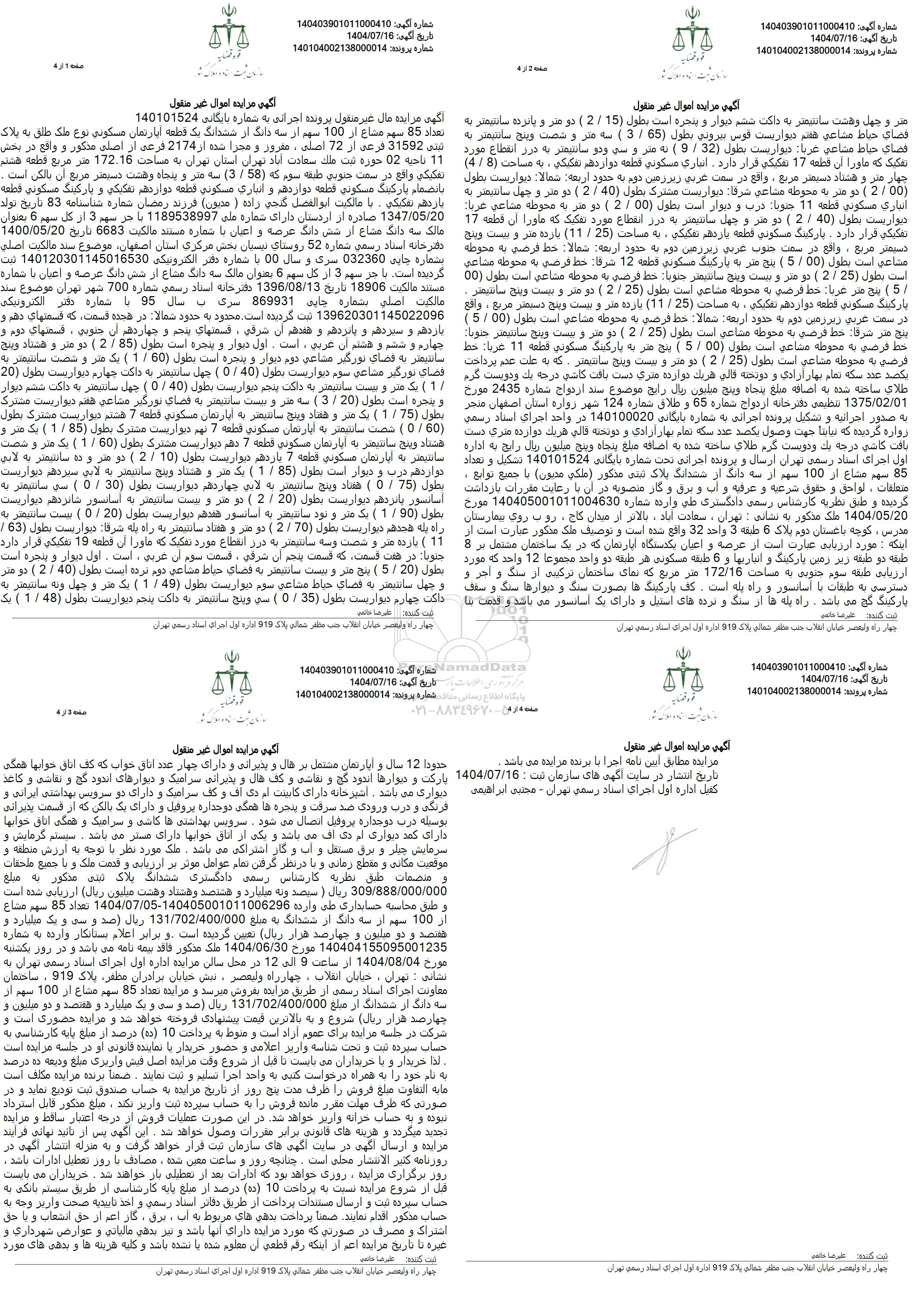 مزایده روز یکشنبه مورخ 1404.8.4 از ساعت 9 الی 12