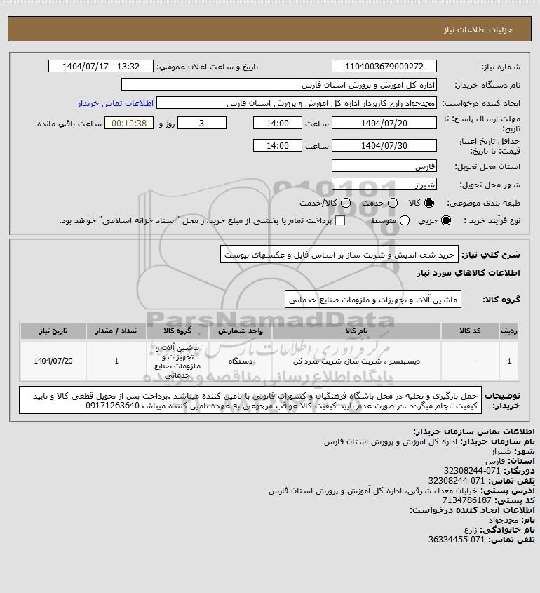 نام سازمان خریدار: اداره کل اموزش و پرورش استان فارس