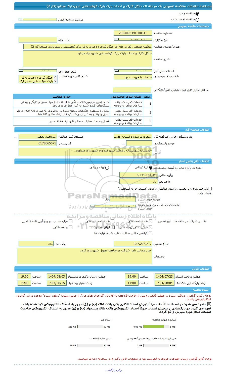 | نام دستگاه اجرایی مناقصه گزار | شهرداری میداود استان خوزستان | مسئول ثبت مناقصه | اسماعیل بهمنی |