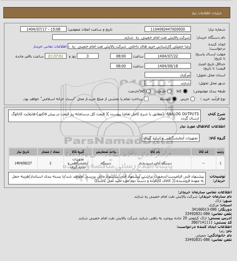 شرح کلی نیاز: ANALOG OUTPUTS -(مطابق با شرح کامل تقاضا پیوست )( قیمت کل درسامانه ریز قیمت در پیش فاکتور)-هایلایت کاتالوگ ارسال گردد