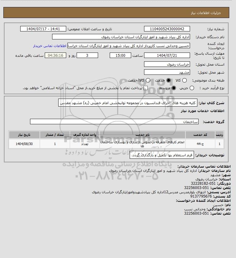 استعلام کلیه هزینه های اجرای فندانسیون در مجموعه توانبخشی امام خمینی (ره) مشهد مقدس, استعلام کلیه هزینه های اجرای فندانسیون در مجموعه توانبخشی امام خمینی (ره) مشهد مقدس