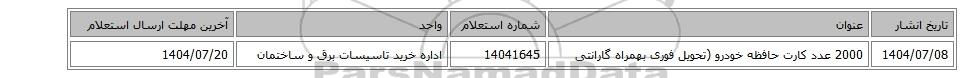 استعلام 2000 عدد کارت حافظه خودرو (تحویل فوری بهمراه گارانتی, استعلام، 2000 عدد کارت حافظه خودرو (تحویل فوری بهمراه گارانتی