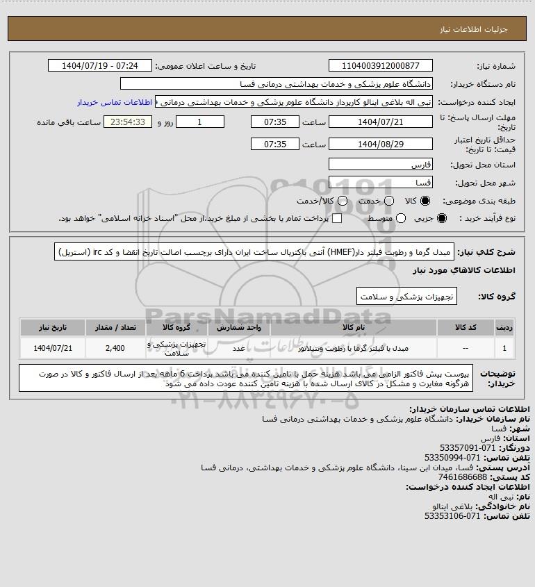 نام دستگاه خریدار:دانشگاه علوم پزشکی و خدمات بهداشتی درمانی فسا