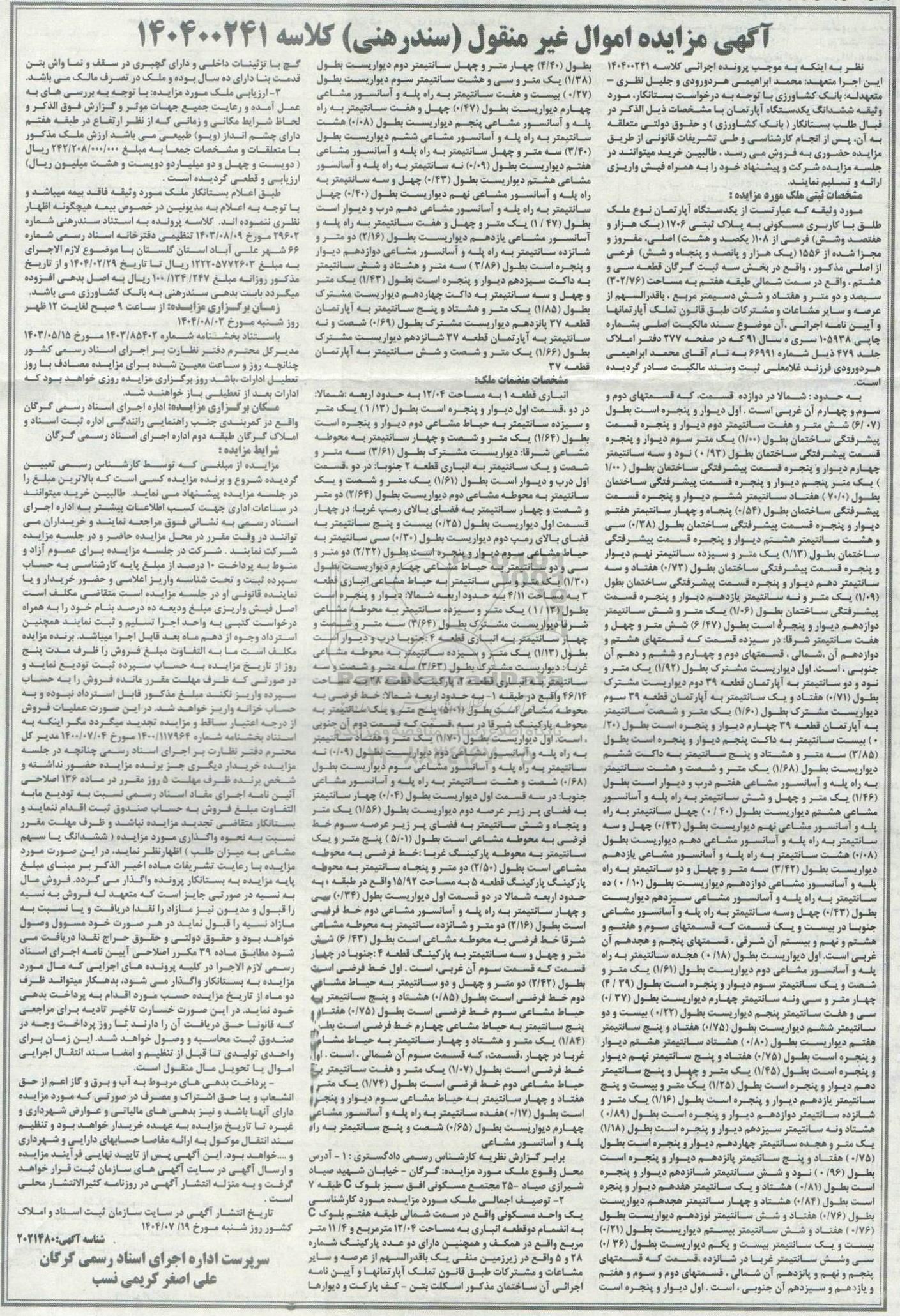 آگهی مزایده اموال غیرمنقول (سند رهنی) 140400241 ؟