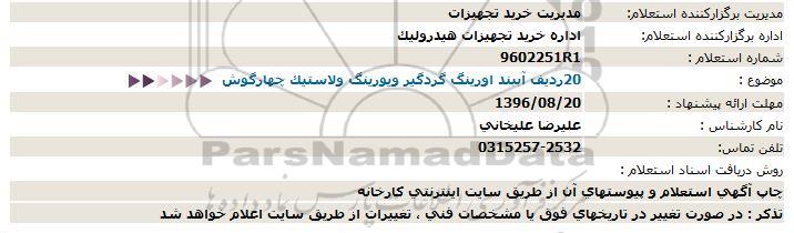 اداره برگزارکننده استعلام: اداره خرید تجهیزات هیدرولیک