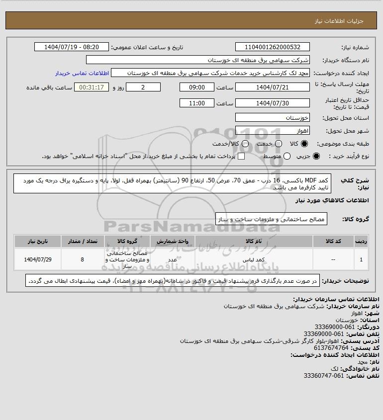 نام دستگاه خریدار:شرکت سهامی برق منطقه ای خوزستان