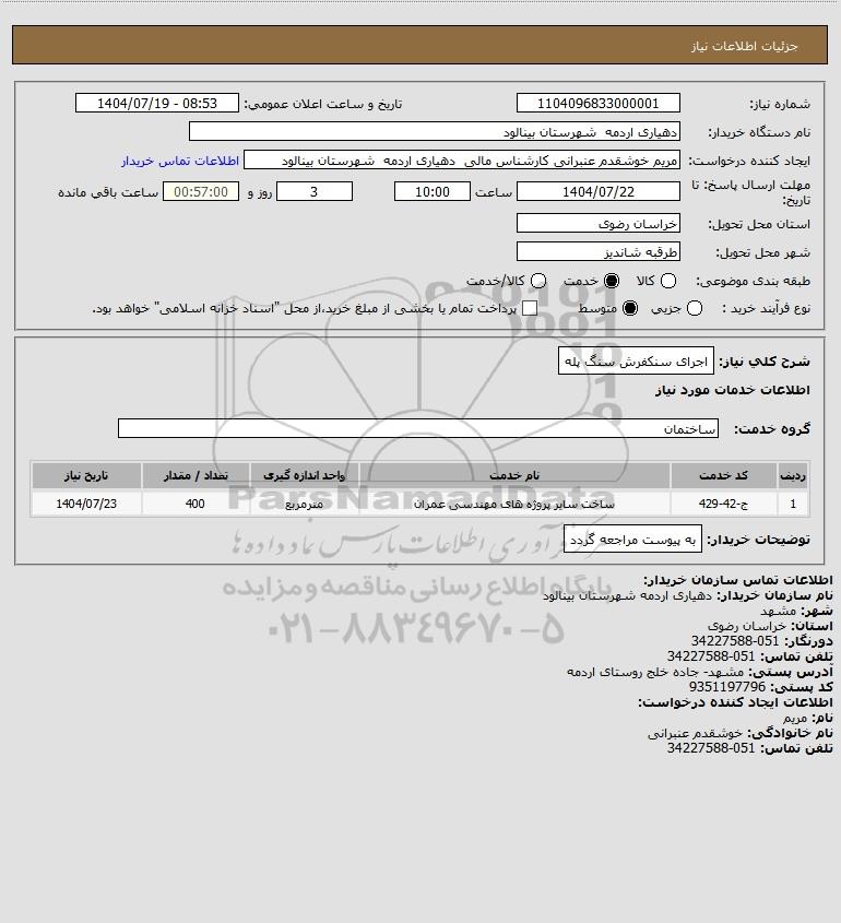 شرح کلی نیاز: اجرای سنکفرش سنگ پله