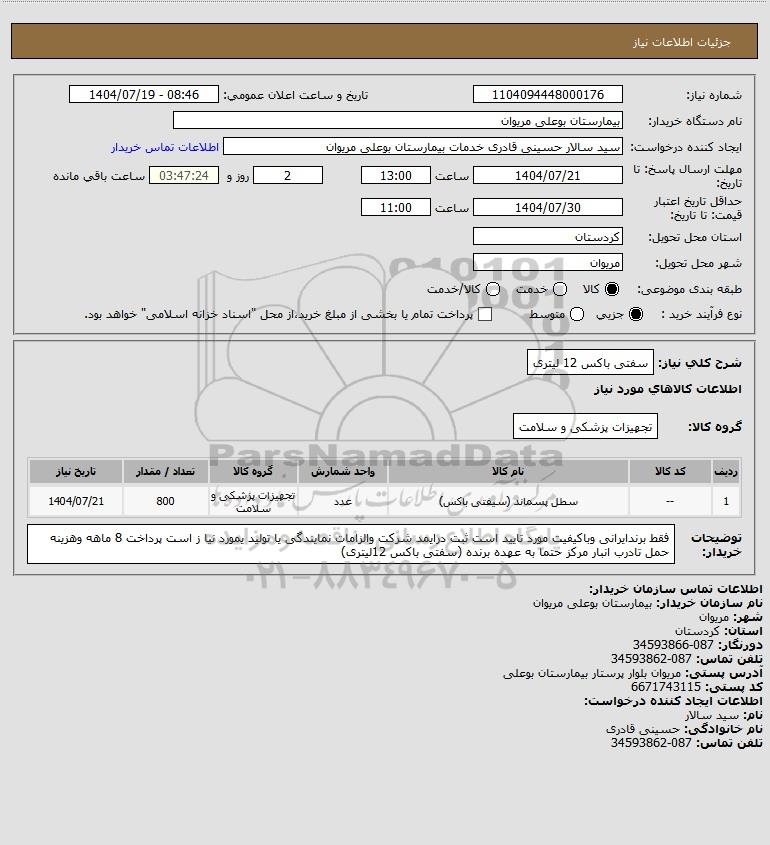 نام سازمان خریدار: بیمارستان بوعلی مریوان