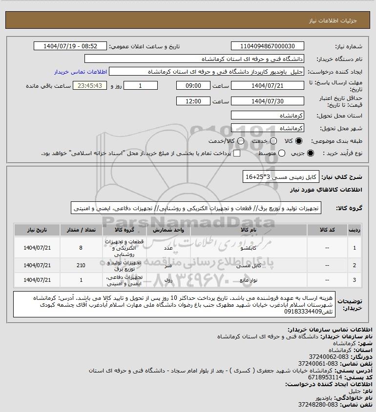 نام دستگاه خریدار:دانشگاه فنی و حرفه ای استان کرمانشاه