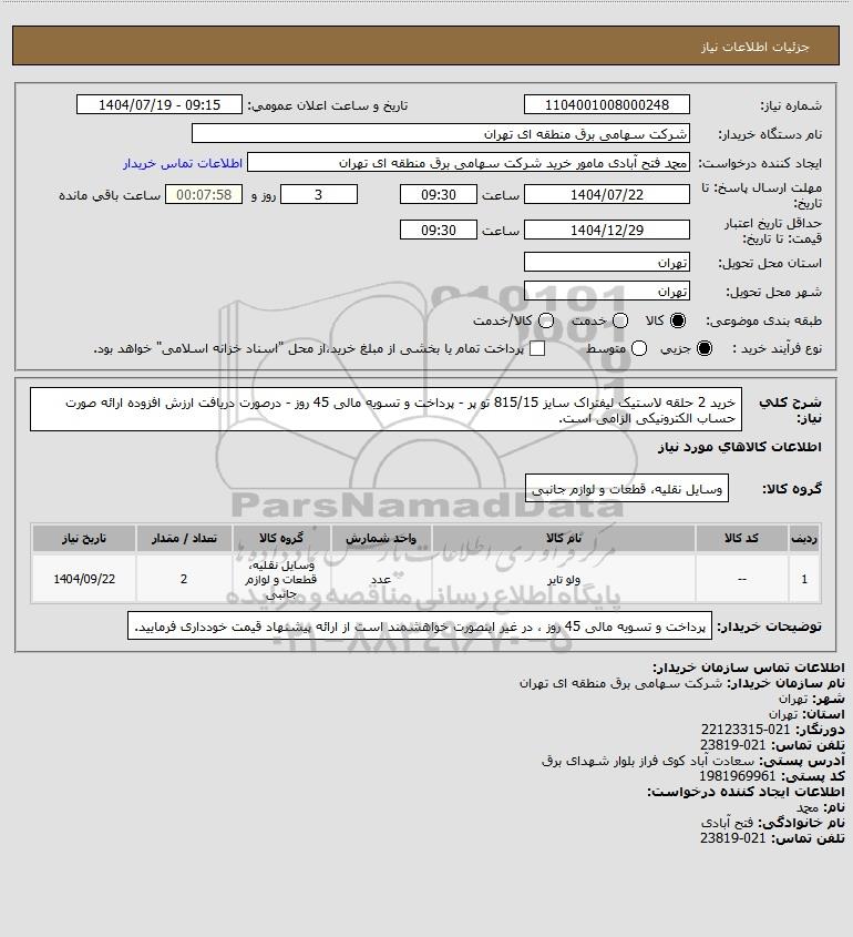 نام سازمان خریدار: شرکت سهامی برق منطقه ای تهران