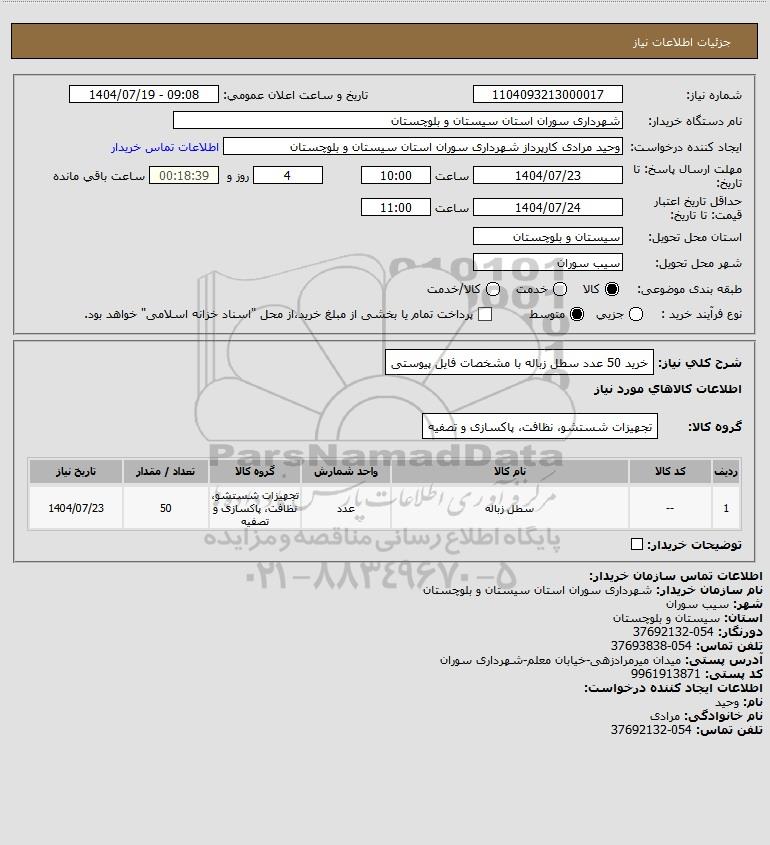 شرح کلی نیاز: خرید 50 عدد سطل زباله با مشخصات فایل پیوستی