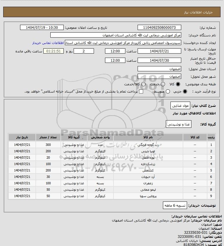 نام دستگاه خریدار:مرکز اموزشی درمانی ایت الله کاشانی استان اصفهان