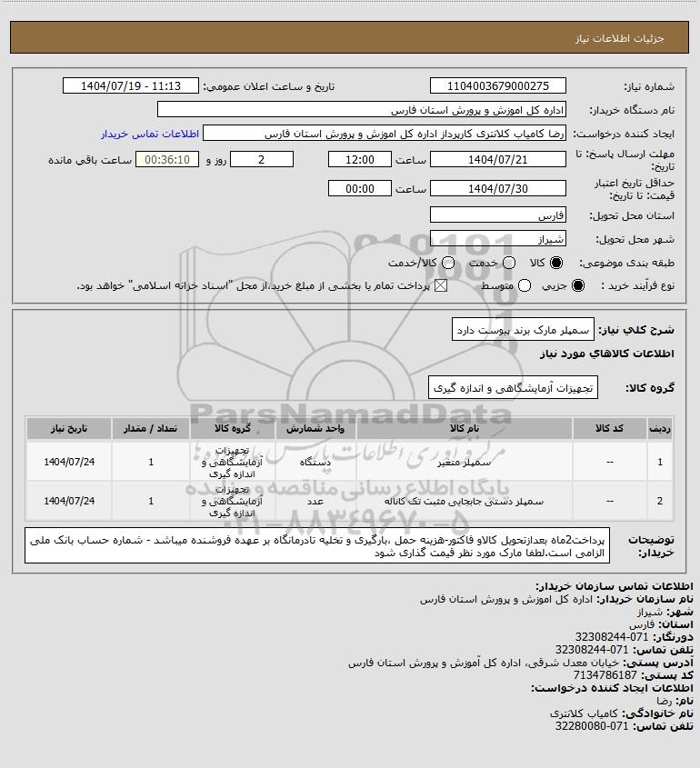 نام دستگاه خریدار:اداره کل اموزش و پرورش استان فارس