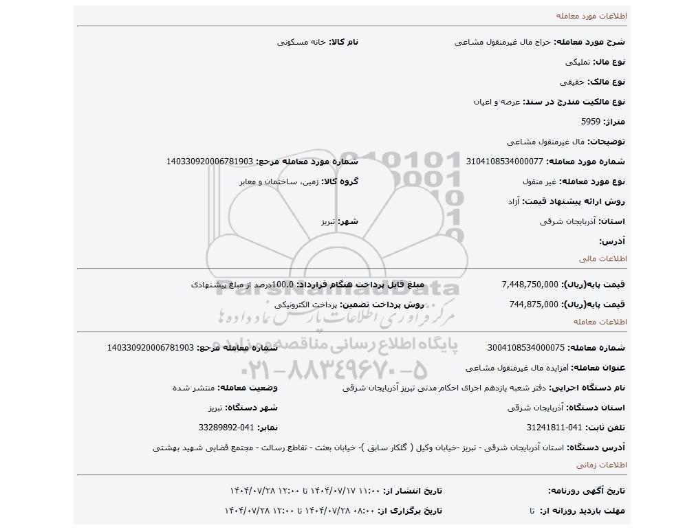 عنوان معامله: lمزایده مال غیرمنقول مشاعی