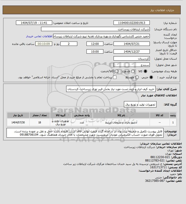 شرح کلی نیاز: خرید کیف ابزار و کیف تست مورد نیاز بخش فیبر نوری زیرساخت کردستان