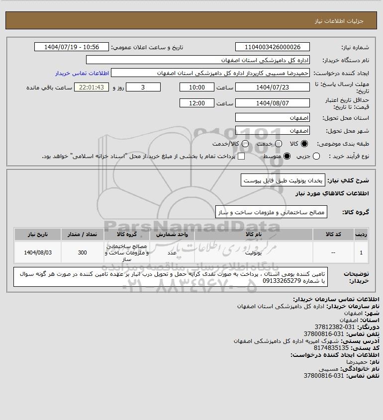 نام دستگاه خریدار:اداره کل دامپزشکی استان اصفهان
