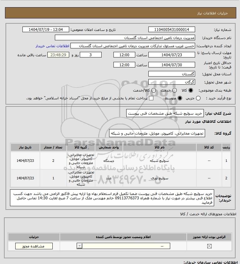 استعلام خرید سوئیچ شبکه طبق مشخصات فنی پیوست, استعلام خرید سوئیچ شبکه طبق مشخصات فنی پیوست