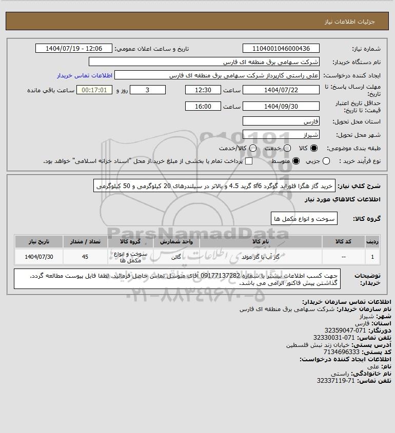نام دستگاه خریدار:شرکت سهامی برق منطقه ای فارس