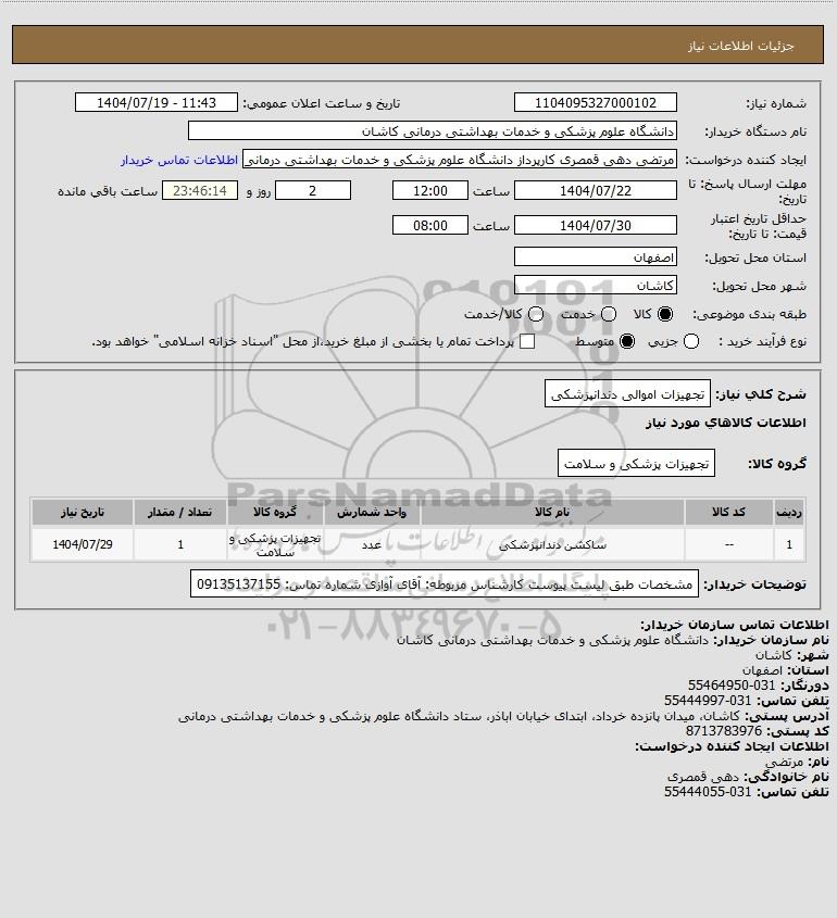 نام دستگاه خریدار:دانشگاه علوم پزشکی و خدمات بهداشتی درمانی کاشان