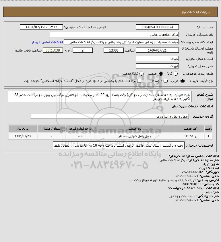 نام سازمان خریدار: مرکز اطلاعات مالی
