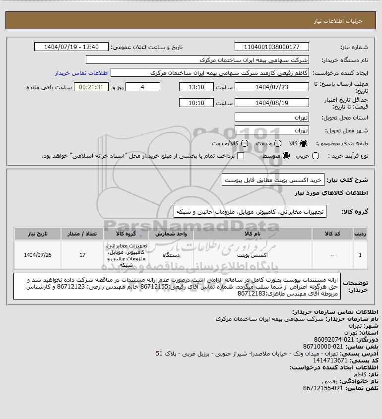 نام دستگاه خریدار:شرکت سهامی بیمه ایران ساختمان مرکزی