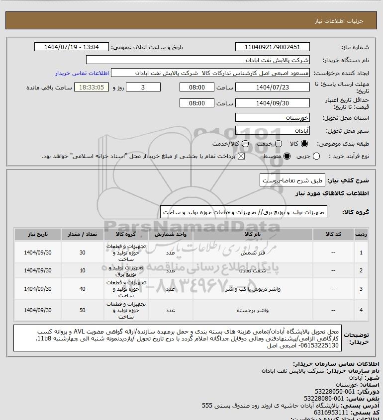 نام سازمان خریدار: شرکت پالایش نفت ابادان