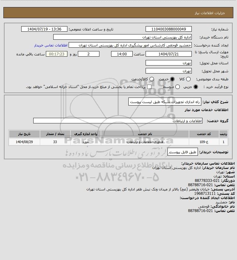 شرح کلی نیاز: راه اندازی تجهیزات شبکه طبق لیست پیوست