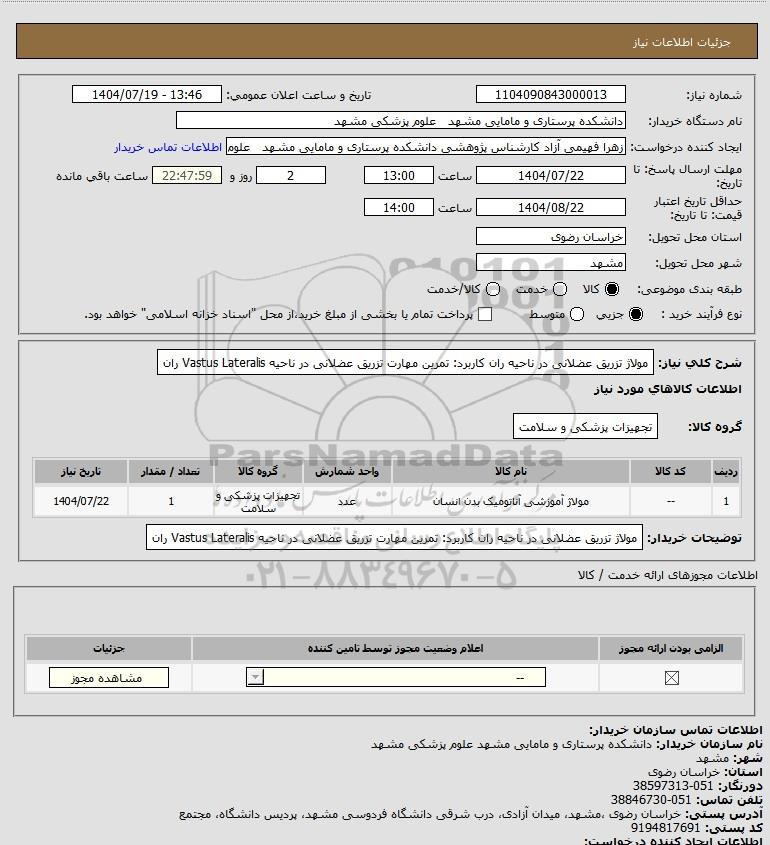 نام دستگاه خریدار:دانشکده پرستاری و مامایی مشهد علوم پزشکی مشهد