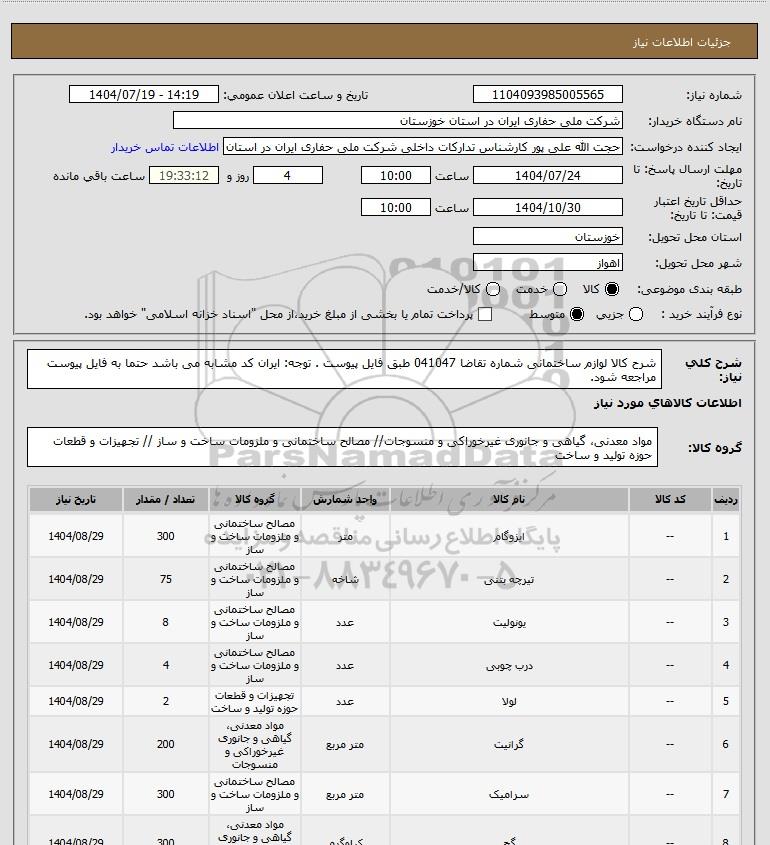 نام سازمان خریدار: شرکت ملی حفاری ایران در استان خوزستان