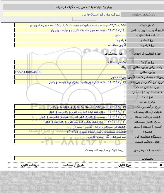عملیات پشتیبانی فنی ستاد شیراز ۱۴۰۴/۵۱